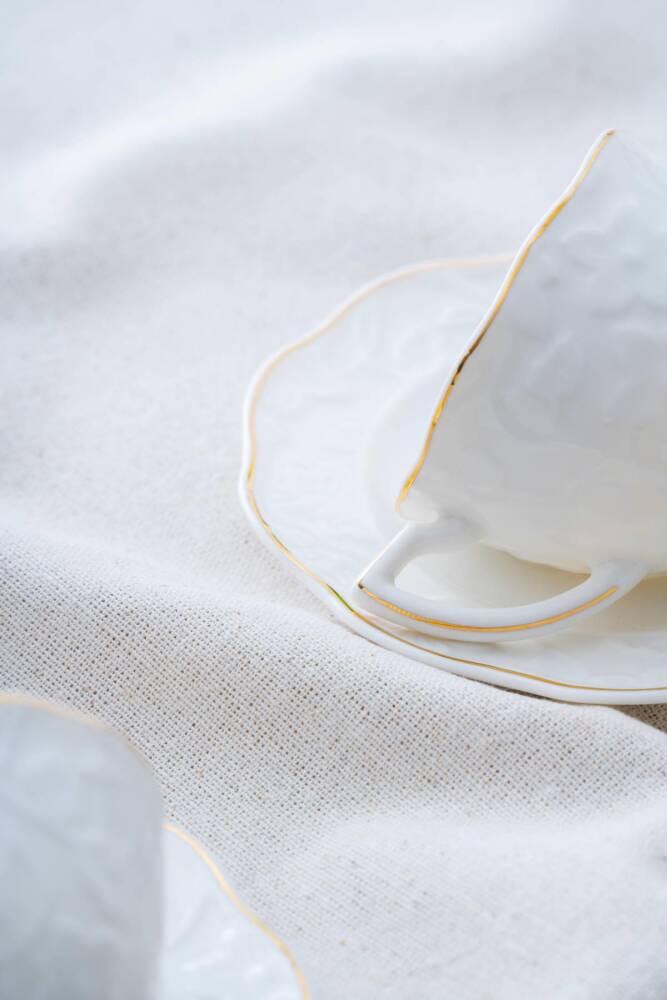 ACAR Octavia 6-Person Porcelain Tea Cup & Saucer Set (90 ml) – Gold or Silver Accents