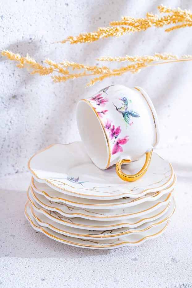 Elevate your coffee ritual with the ACAR Pietro 6-Person Porcelain Coffee Cup & Saucer Set (90 ml). Crafted from fine porcelain, this elegant set combines timeless style with artful detail—each cup and saucer features a delicate floral motif paired with subtle multicolor accents, accented further by refined gold detailing. Ideal for greeting guests or gifting to someone special, this set brings together hospitality, sophistication, and craftsmanship seamlessly.