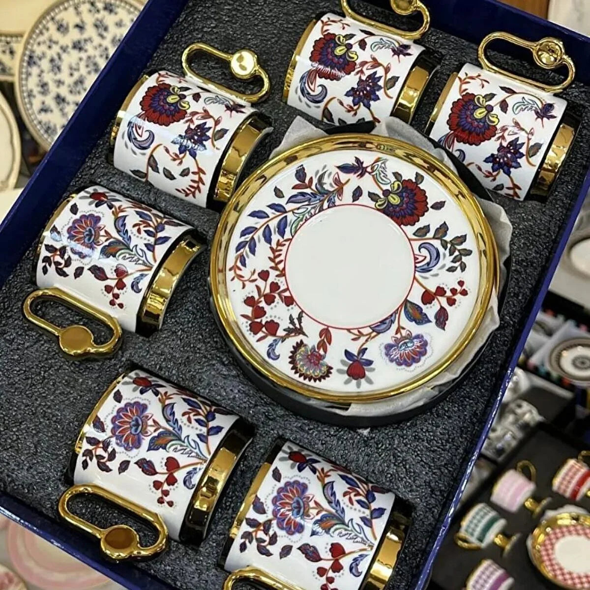KOSOVA Sophia 6-Person Porcelain Coffee Cup & Saucer Set (90 ml)