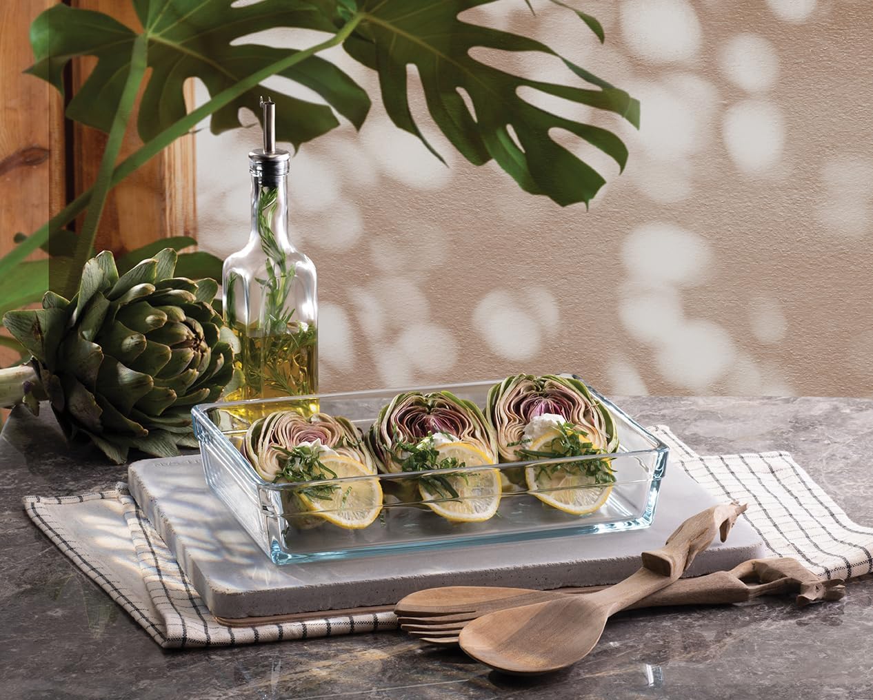 The Pasabahce Rectangular Premium Borcam Tray with a 2500 cc capacity is designed for versatile kitchen use. Ideal for baking, serving cakes, pastries, and various dishes, its heat-resistant glass ensures durability during oven use. This tray also simplifies cleanup, being dishwasher safe, making it a practical and reliable choice for both cooking and presentation.