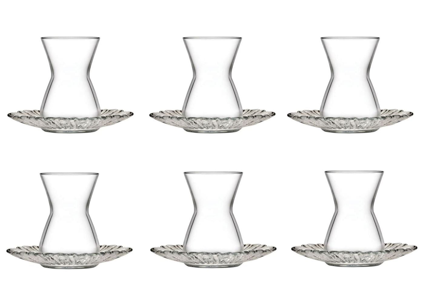 Elevate your hosting experience with the Pasabahce Selale Tea 12 Piece Set. Featuring six elegantly thin-waisted tea glasses adorned with refined diamond patterns, each glass holds 140 ml, ideal for serving traditional tea. The set includes matching saucers, combining style and functionality for seamless guest hosting. Perfect for formal gatherings or everyday use, this set brings sophistication and durability to your tea service.